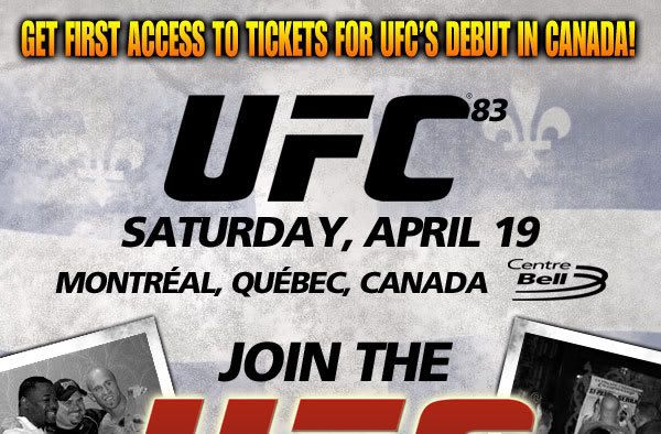 Haha. UFC.com don't qualify as a reliable source for a UFC event ? Oh well. I was just trying to help. But 'UFC 83' will be held in Montreal at the Bell Centre on Saturday April 19th, 2008 ;)
