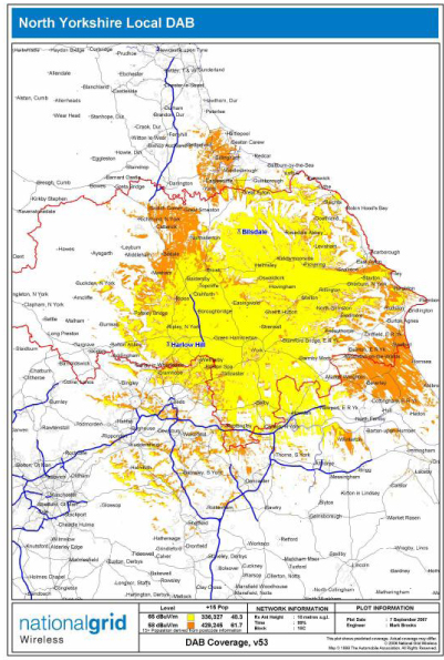 On Friday 14th September, it was announced that the station will launch on DAB across North Yorkshire. [1] In September 2007 MuxCo applied a local DAB Digital Radio licence, to cover the North Yorkshire area. MuxCo was awarded the licence in December 2007 and aims to commence broadcasting in mid-2009. The map of the area that will be transmitted [2]