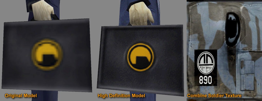 - It's not the same symbol, though. In the original Half-Life and its expansion packs, the symbol on the G-Man's briefcase is just the Black Mesa logo. I don't know what the origin is of the symbol on the Combine soldiers' uniforms, but it's definitely not the Black Mesa logo. Here's a picture if you would like to compare: http://www.nextdimension.org/other/gman_logo.jpg MarphyBlack 21:45, 30 November 2006 (UTC)
