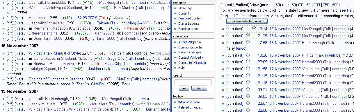 - Thanks go to Wikipedia's watchlist, too: http://img.photobucket.com/albums/v316/harami2000/log.gif - watchlist, left; change log to my talk page, right. The watchlist would appear not to be 100% perfect when it comes to home page watches.