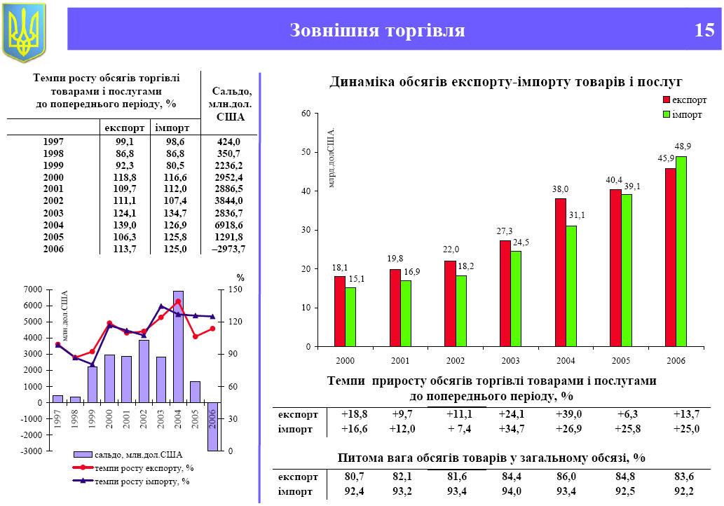 Ukraine 2006 45.9 billion dollars of exports