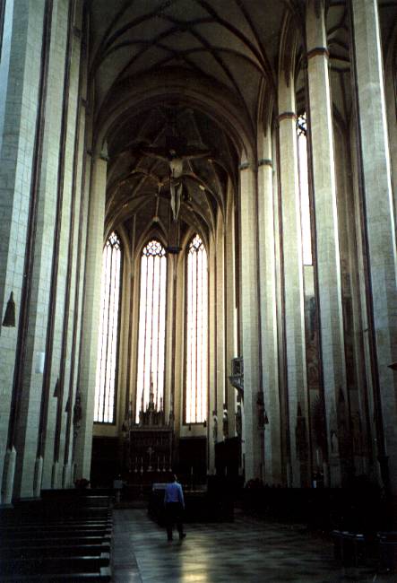 In 1342, the town was partially destroyed by fire. After this fire, the people of Landshut filled their plots of land with 3 meters of soil to protect their houses against floods. The first church was now 3 meters deeper than the surrounding buildings. So, in 1380 Duke Friedrich and the people of Landshut decided to build a new church in the gothic style.