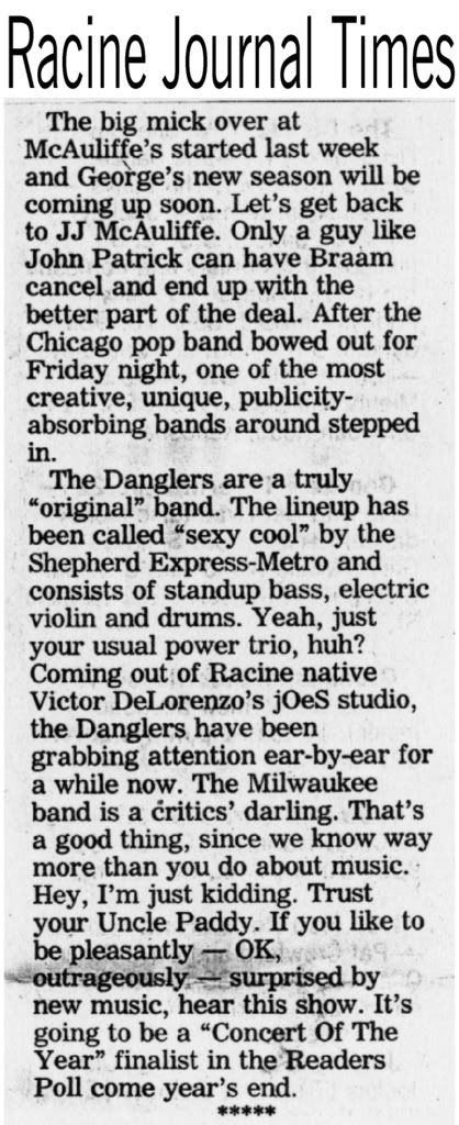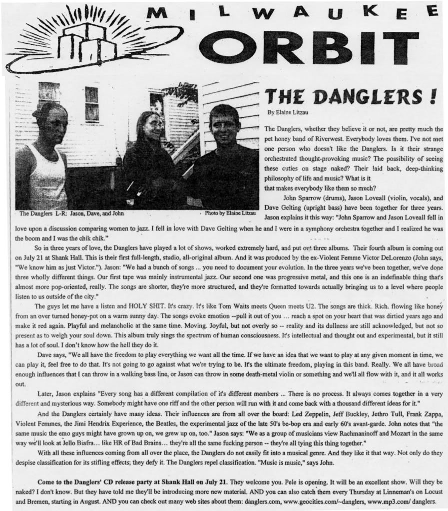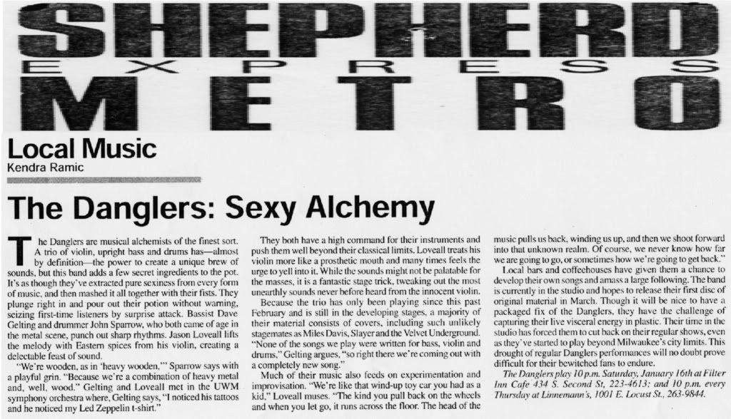 - ^ Shepard Express Metro http://i279.photobucket.com/albums/kk125/THEDANGLERS/The%20Danglers%20Press%20Clippings/1-99ShepherdExpress.jpg