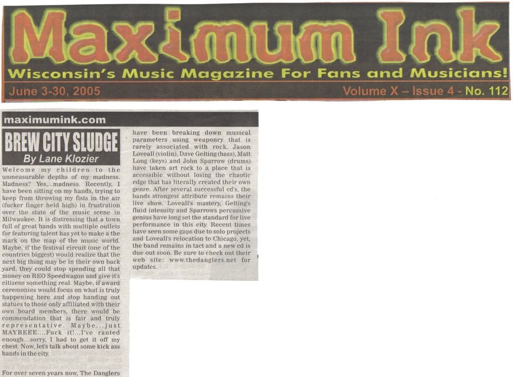 - ^ Maximum Ink, October 2000, http://i279.photobucket.com/albums/kk125/THEDANGLERS/The%20Danglers%20Press%20Clippings/10-00MaximumInk.jpg